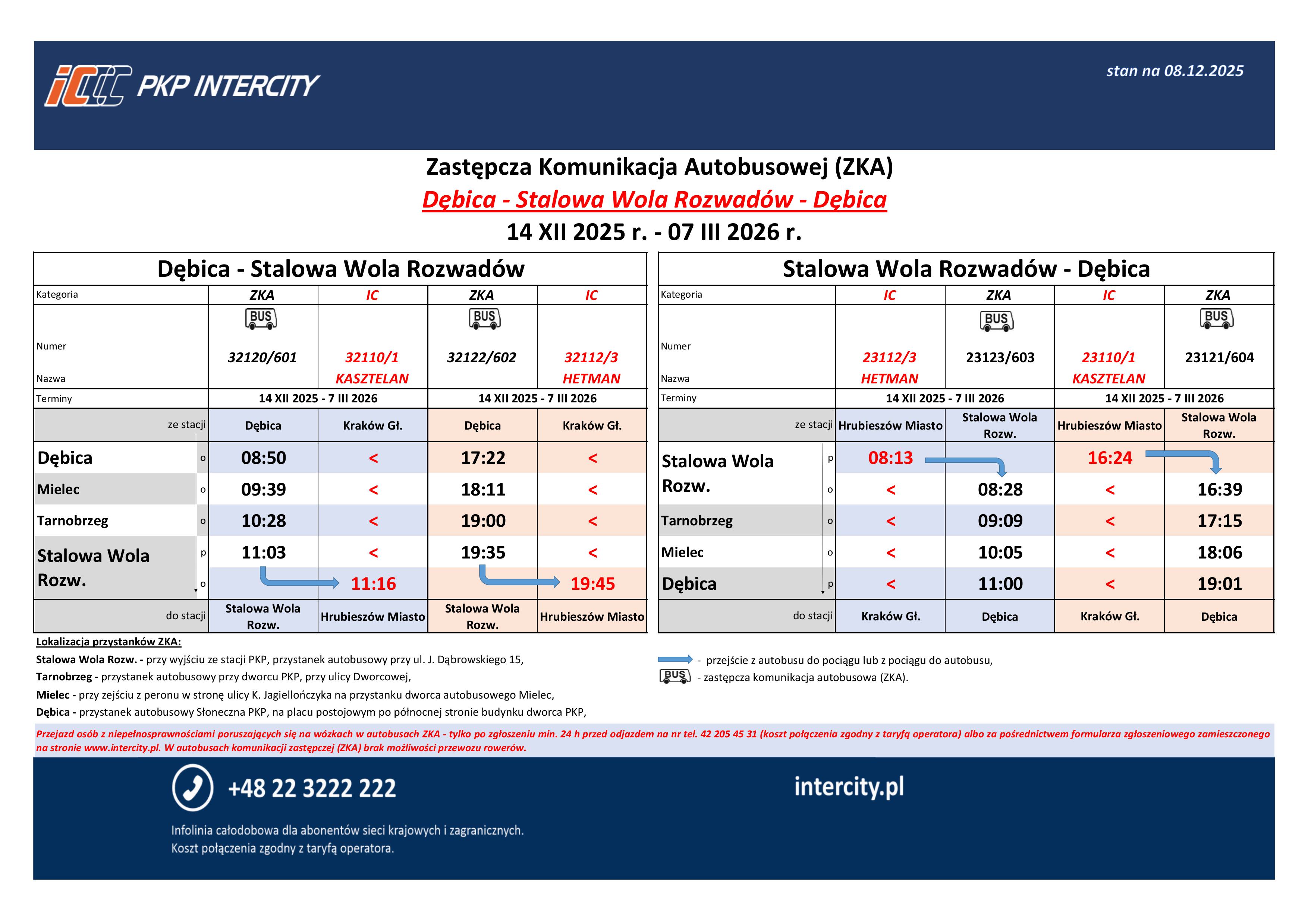 - Stalowa Wola Rozwadów – przy wyjściu ze stacji PKP, przystanek autobusowy przy ul. J. Dąbrowskiego 15 – sprawdź lokalizację na mapieotwiera się w nowym oknie