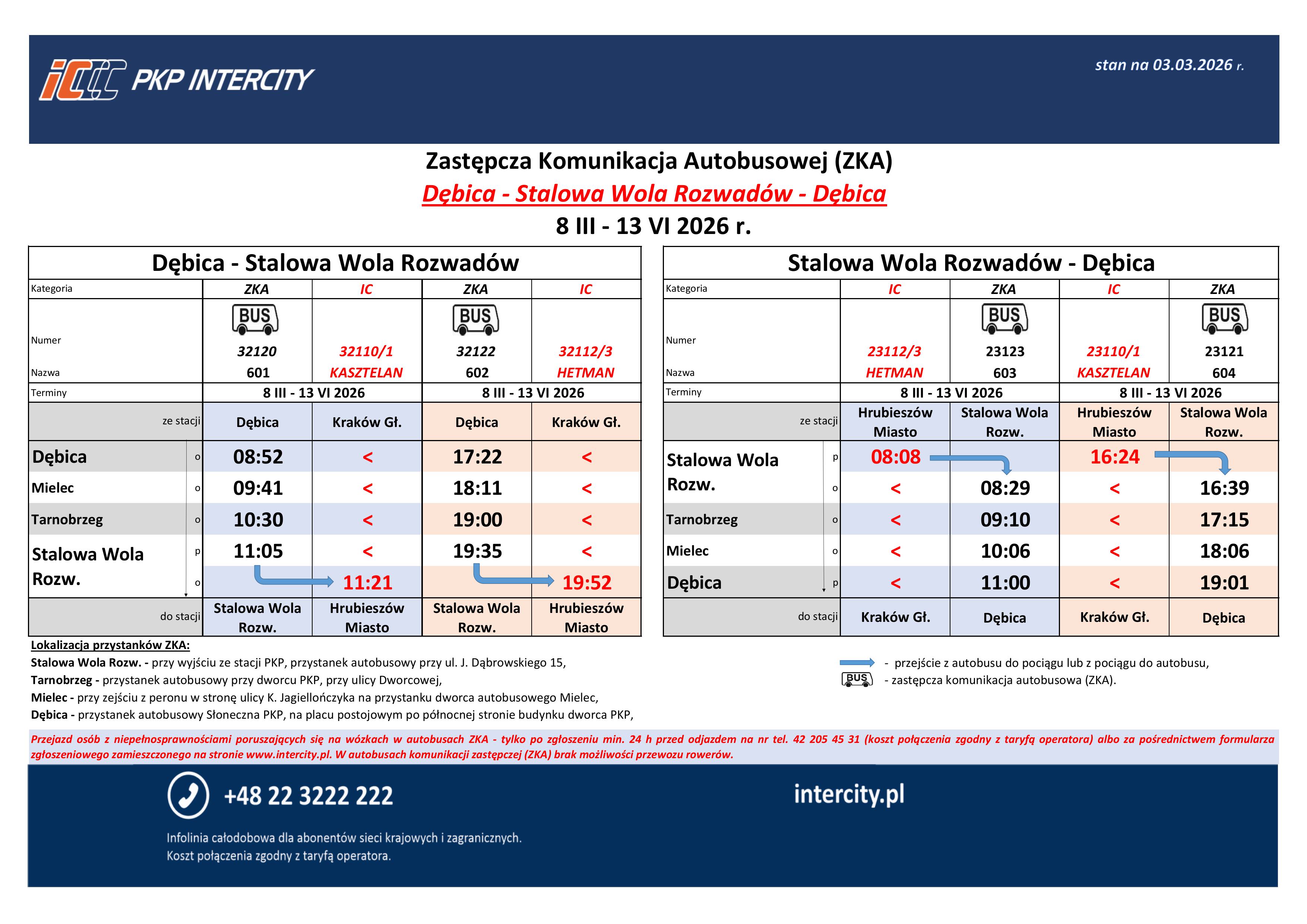 - Stalowa Wola Rozwadów – przy wyjściu ze stacji PKP, przystanek autobusowy przy ul. J. Dąbrowskiego 15 – sprawdź lokalizację na mapieotwiera się w nowym oknie
