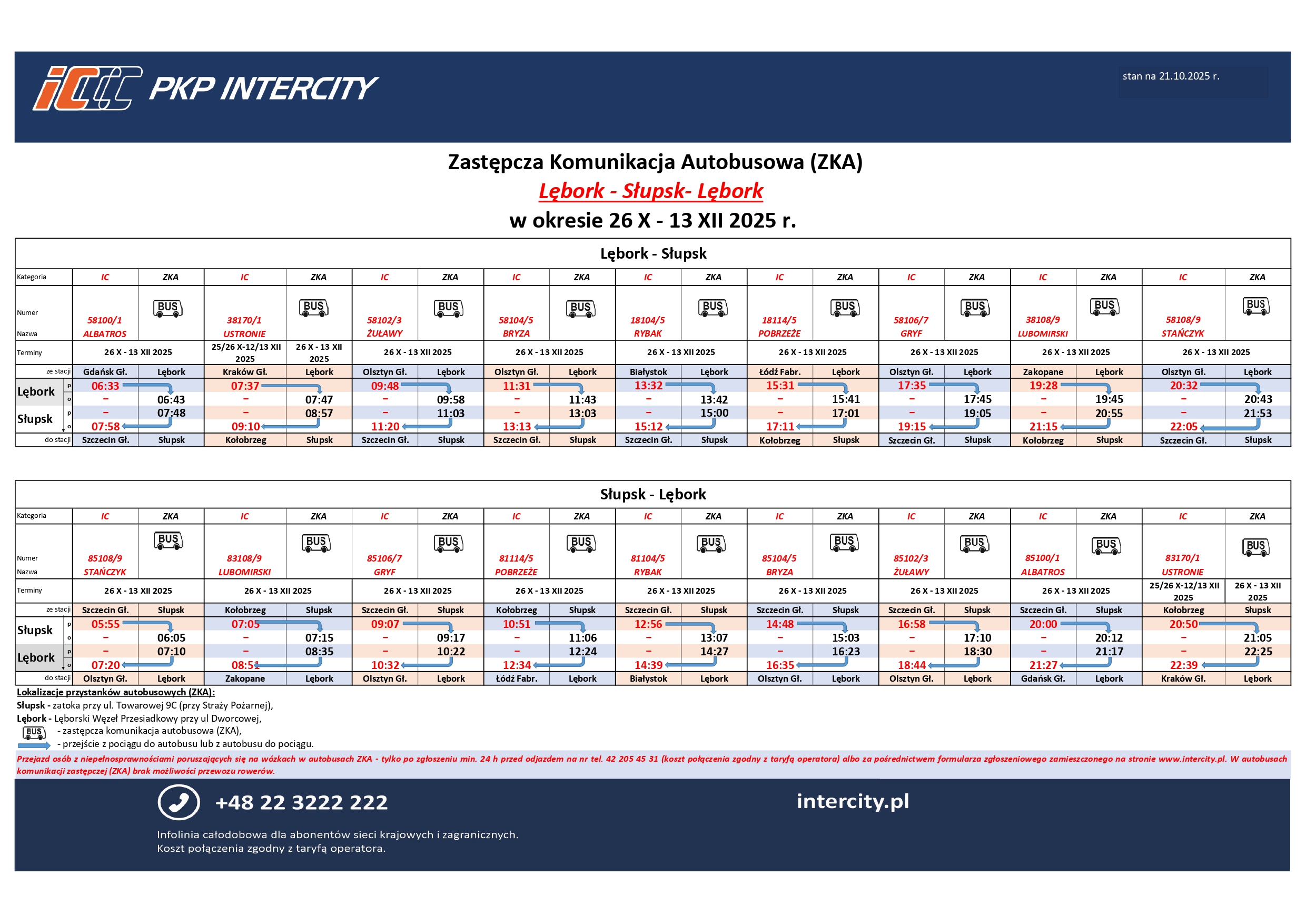 Na trasie Lębork - Słupsk w okresie od 26 października do 13 grudnia 2025 roku obowiązywać będzie Zastępcza Komunikacja Autobusowa.