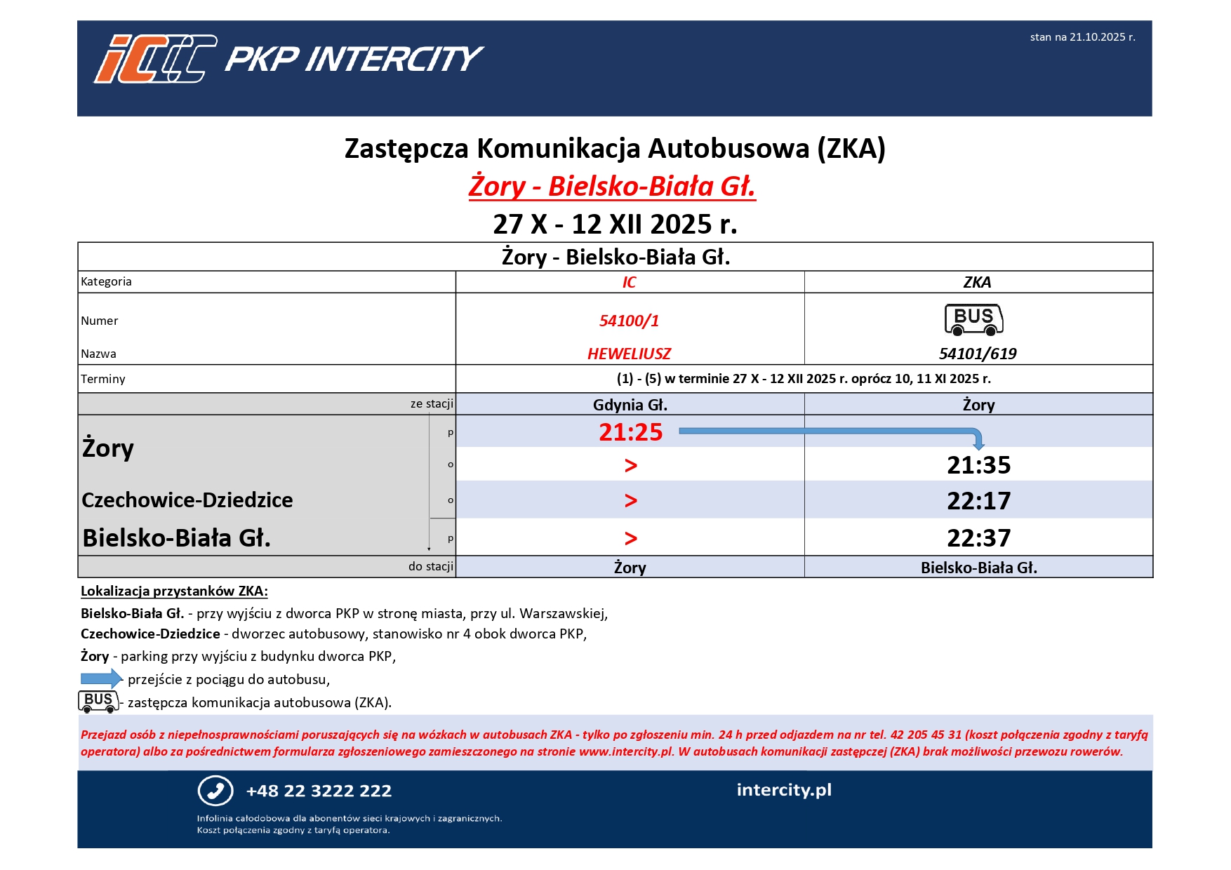 - Czechowice-Dziedzice – dworzec autobusowy, stanowisko nr 4 obok dworca PKP – sprawdź lokalizację na mapieotwiera się w nowym oknie