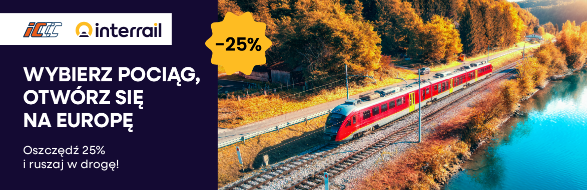 - 25% tańsze wszystkie Interrail Global Pass oraz One Country Pass (z wyłączeniem One Country Pass Switzerland)